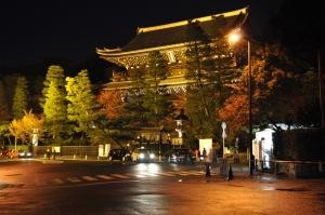 日本最大級の木造二重門である国宝「三門」や「御影堂」、宮崎友禅ゆかりの庭園「友禅苑」、除夜の鐘で有名な「大鐘楼」など、錦秋の優雅な世界をライトアップされます。