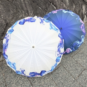 傘布全面を活かし、大きな海月を美しい水彩調にアレンジして描いた長傘のご紹介で