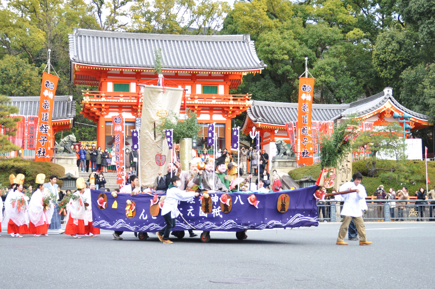 1月9日・10日は祇園のえべっさん。10日の午後3時からは、八坂神社境内の蛭子(えびす)社で蛭子社祭が行われます。