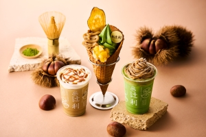 厳選された宇治抹茶を使用した抹茶ソフトクリームをベースに、芳醇な渋皮入りマロンクリームと、ほっくり甘い栗の甘露煮を贅沢にトッピング。さらに、香ばしい芋チップが食感のアクセントに。抹茶の深みと秋の素材が織りなす季節感あふれるパルフェです。