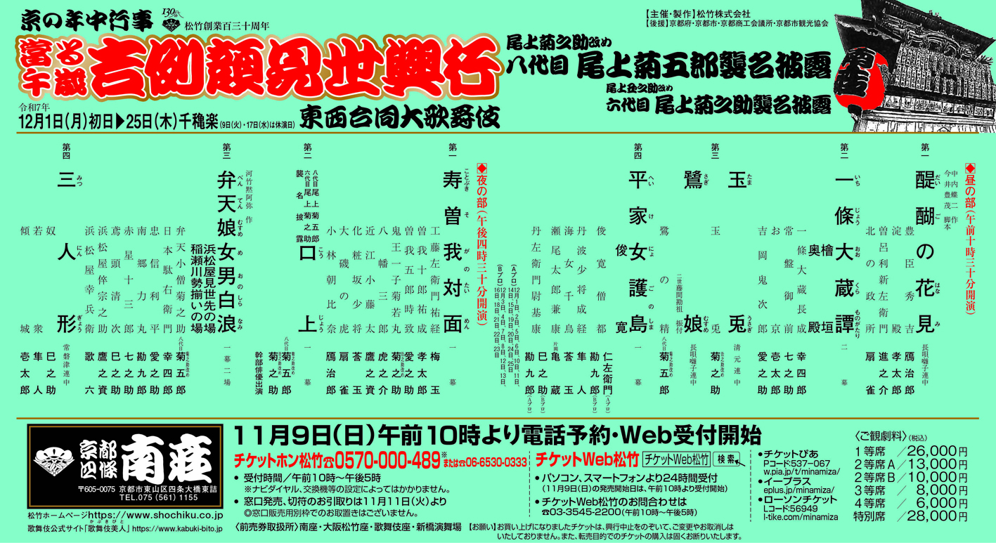 詳しくは松竹ホームページでどうぞ。 https://www.shochiku.co.jp/play/theater/minamiza/